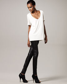 We saw the best selection at Bergdorf Goodman, but, you’ll find that many upscale and even mass market stores like Banana Republic will carry leathers in your price range.