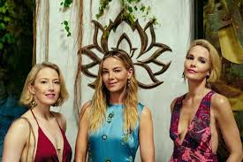 The Sky View House Party where several propositions were made: Here the dirty rich and uber wealthy couples of balding men and hot girls are gathering at the home where one such couple, resides. Proposals and sexual contracts are proposed. and then turned down. The ‘hot girls’ are always wearing something that seems like it is from the 1990s, like they spent their youth watching Beverly Hills 90210 and never got over it. Its literally perfection as it shows their total lack of fashion sense, only ‘copycatting’ their tv re-ru idols. Our leading lady, a smooth operator, is wearing a short black/white dress that makes her look like a slutty car-hop girl, with buckles down the bodice that hints about the sexual escapades that might be ahead. Belinda, our Spa Lady, always wears an elegant and chic Caftan ensemble and her elegance literally overshadows her working class origins. Its hard to believe she has not been to some Paris fashion week shows. But, her uniform at the resort takes her back down to her reality and we do believe her. The family, dressed up to separate themselves from the other “lowly people” at the party show up in their Southern Country Club attire and even at an elegant billionaire’s party, they still all look a bit small town.
